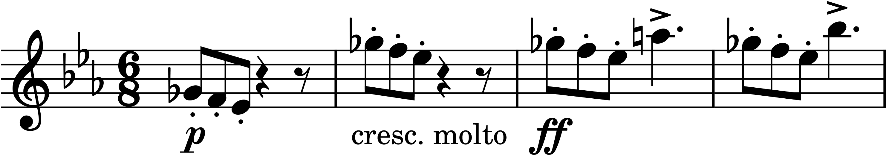バスとティンパニの重々しい響きに支配された序奏では、短調であることが示されたのち、上昇音型と下降音型が半音階で交錯する。荘厳ながらどこか空疎な寂寞感が世界を提示し、オーボエの優しく切ない旋律に導かれ主部へと入る。主部では慌ただしく緊張と弛緩が繰り返されるが、突如、ヴィオラから「運命の動機」が鋭い鼓動のごとく奏でられる(譜例1)。「運命の動機」がヴァイオリンへ移ると楽曲は激しさを増し、闘争の旋律、束の間の康寧を経て、ついには最高点へと達する。全体を通して短調だが、最後はポコ・ソステヌートへと速度を緩めつつ、長調に転じて結ばれる。