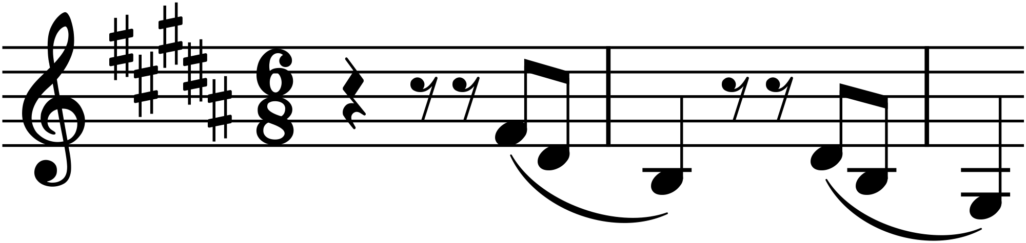 典雅な間奏曲風の楽章である。軽快なクラリネットにホルンの対旋律が重なり、穏やかな変奏が進行する。中間部は8分の6拍子、依然として軽やかな曲調のなかで、「運命の動機」と「死の動機」(譜例2)の執拗な掛け合いが繰り広げられる。その後、楽曲全体は第4楽章に向けて落ち着きを増してゆき、極めて静かに終わる。
