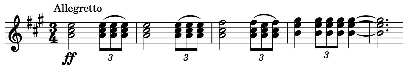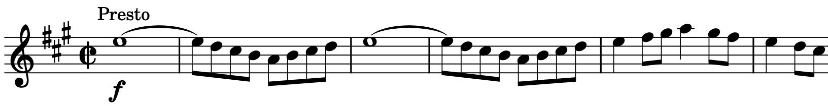 《祝典序曲》は、荘厳なファンファーレ、闊達なリズム・旋律により祝典の雰囲気を体現している。「近代ロシア音楽の父」と呼ばれたミハイル・グリンカ(1804-1857)のオペラ《ルスランとリュドミラ》序曲に倣い、伝統的な楽式や和声法に則っている。冒頭のファンファーレ(譜例1)は、ショスタコーヴィチが娘ガリーナの誕生日を祝うために作曲した7つのピアノ小品曲「子供のノート」から引用されており、トランペットによって晴れやかに奏でられる。プレストではクラリネットが第1主題(譜例2)を奏でるが、これは彼が1949年に作曲したオラトリオ《森の歌》から第5曲「スターリングラード市民は前進する」を引用した旋律である。弦楽器が主旋律を引き継ぎクライマックスへと至ると、スターリン賛美の第1主題はやがて鳴りを潜め、代わりにホルンとチェロが情感豊かな第2主題を唄う。最後は再度ファンファーレがバンダ付きで壮麗に奏され、盛大なコーダに至る。